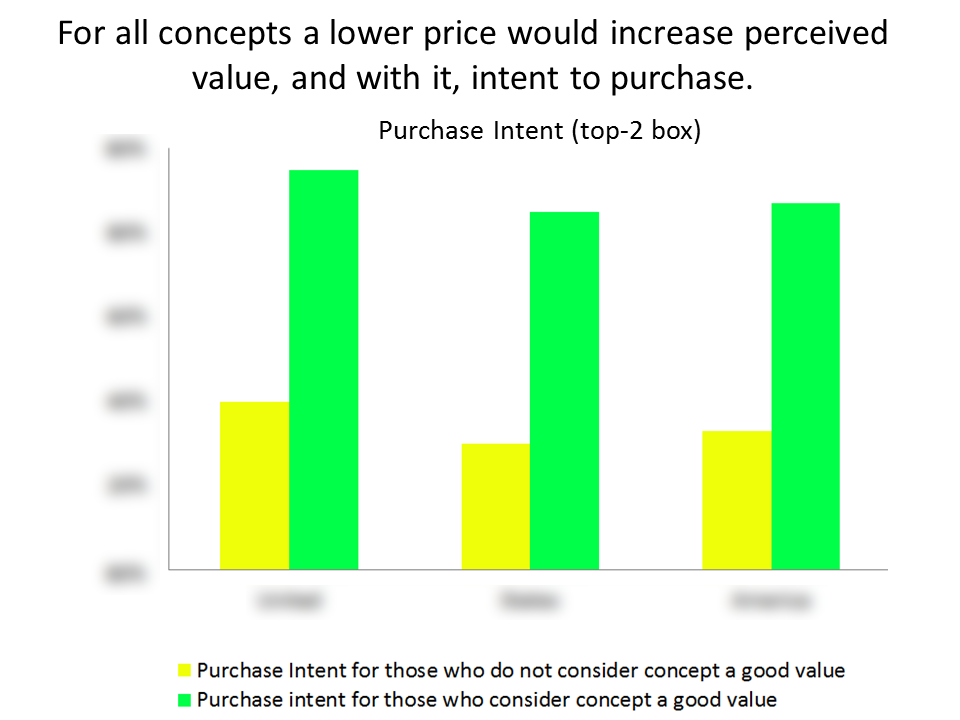 A Consumer Packaged Goods manufacturer needed to know the appeal of a new product, and determine which messaging most resonated with consumers. Our survey asked consumers to evaluate several characteristics of three, different concepts (monadically). The study's findings identified the most promising type of consumer, based on current products purchased. The client also learned, to their surprise, that low perceptions of value hampered product acceptance. Text highlighting results helped tailor messaging for the winning concept.