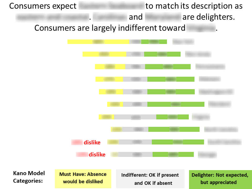 When a major manufacturer of consumer durable goods was planning a new product, it was vital to prioritize the most important features to include. We implemented a Kano model of the options under consideration, ascertaining consumer reactions to each feature's potential presence and potential absence. The result: the client understood the "must have" features that consumers require, as well as the "delighters" that would stand out from the competition.